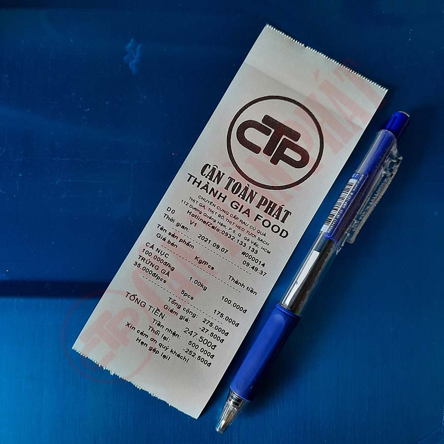 - Tặng 10 cuộn giấy in hóa đơn cao cấp dài 50 mét (giấy bảo vệ đầu in)