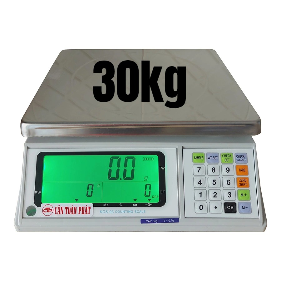 Cân điện tử 30kg là một trong những loại cân điện tử được sử dụng ở mọi địa điểm như hộ kinh doanh, nhà máy hay công xưởng,... chúng có thể cân nặng các đồ vật có trọng lượng tối đa là 30kg nên đây là loại cân phổ biến nhất từ trước đến nay.